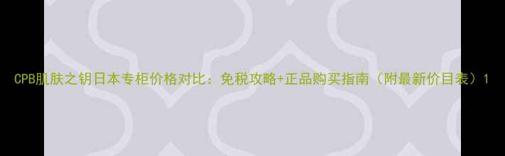 CPB肌肤之钥日本专柜价格对比:免税攻略+正品购买指南(附最新价目表)