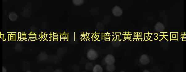 DR药丸面膜急救指南|熬夜暗沉黄黑皮3天回春教程