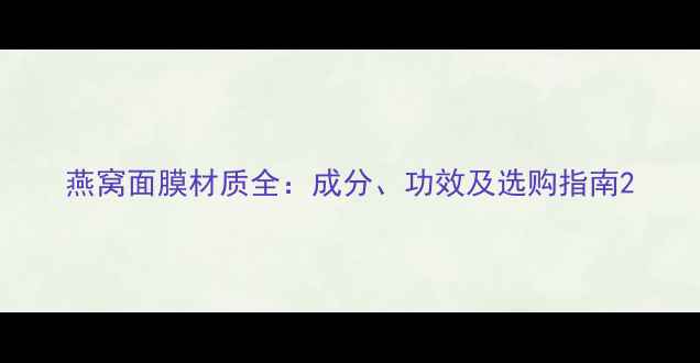 燕窝面膜材质全:成分、功效及选购指南