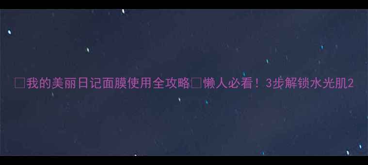 姐妹们!今天要和你们分享我用了3年的国货面膜使用秘籍!作为我的美丽日记铁粉,从初代蜜桃水光到新品黑科技,我试过所有热门款,终于出这套保姆级教程👇